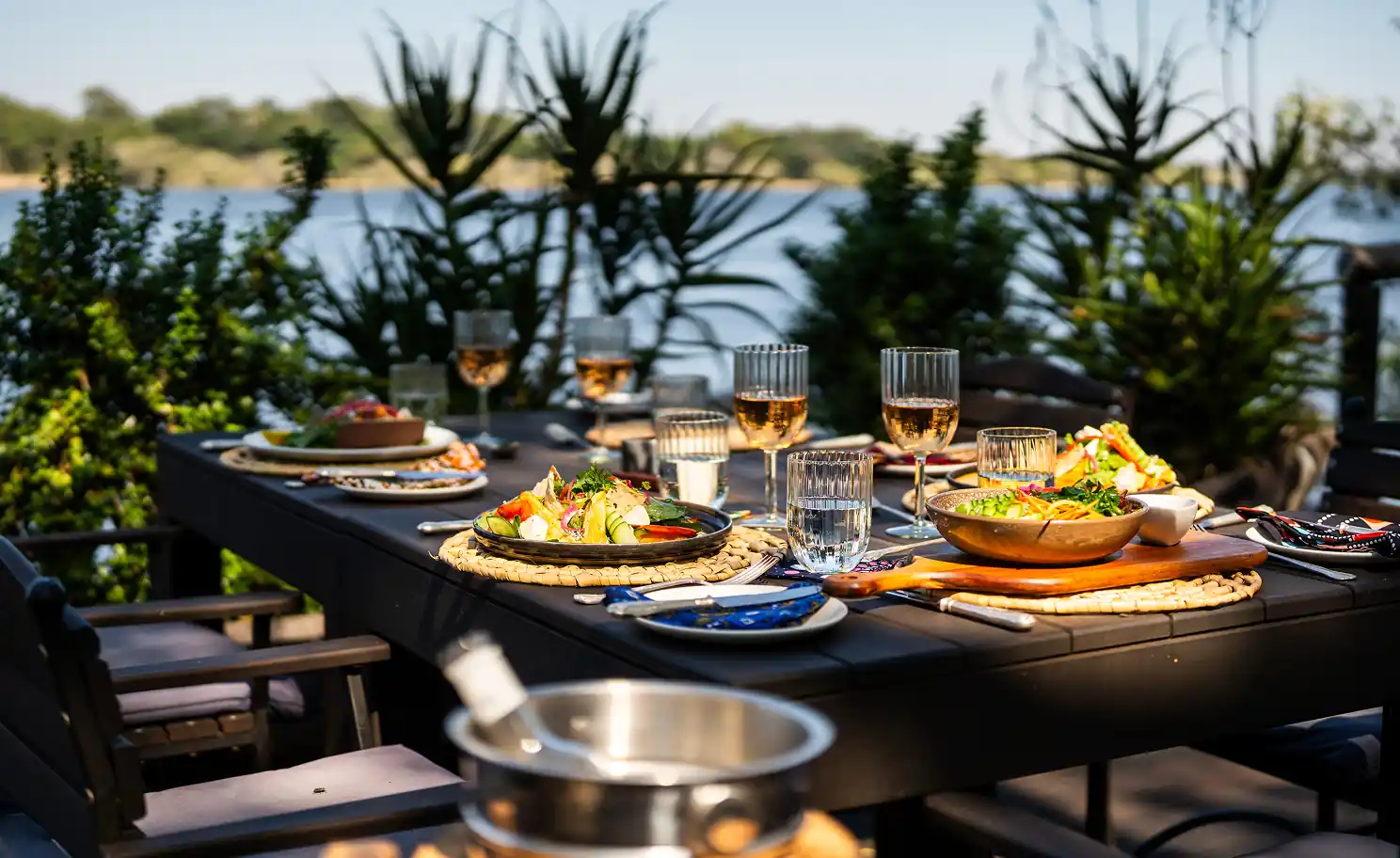 At Mukwa River Lodge, dining is more than a meal, it is a celebration of flavour, season, and place. Our menus are crafted with the same passion and precision found in Michelin-starred kitchens, offering a culinary journey that delights the senses and tells the story of the Zambezi and the local Zambian people.Much of what you taste begins just steps from your table, in our organic gardens where seasonal herbs, vegetables, and fruits are nurtured by hand. We proudly support local markets, sourcing the freshest produce to complement our homegrown harvests.